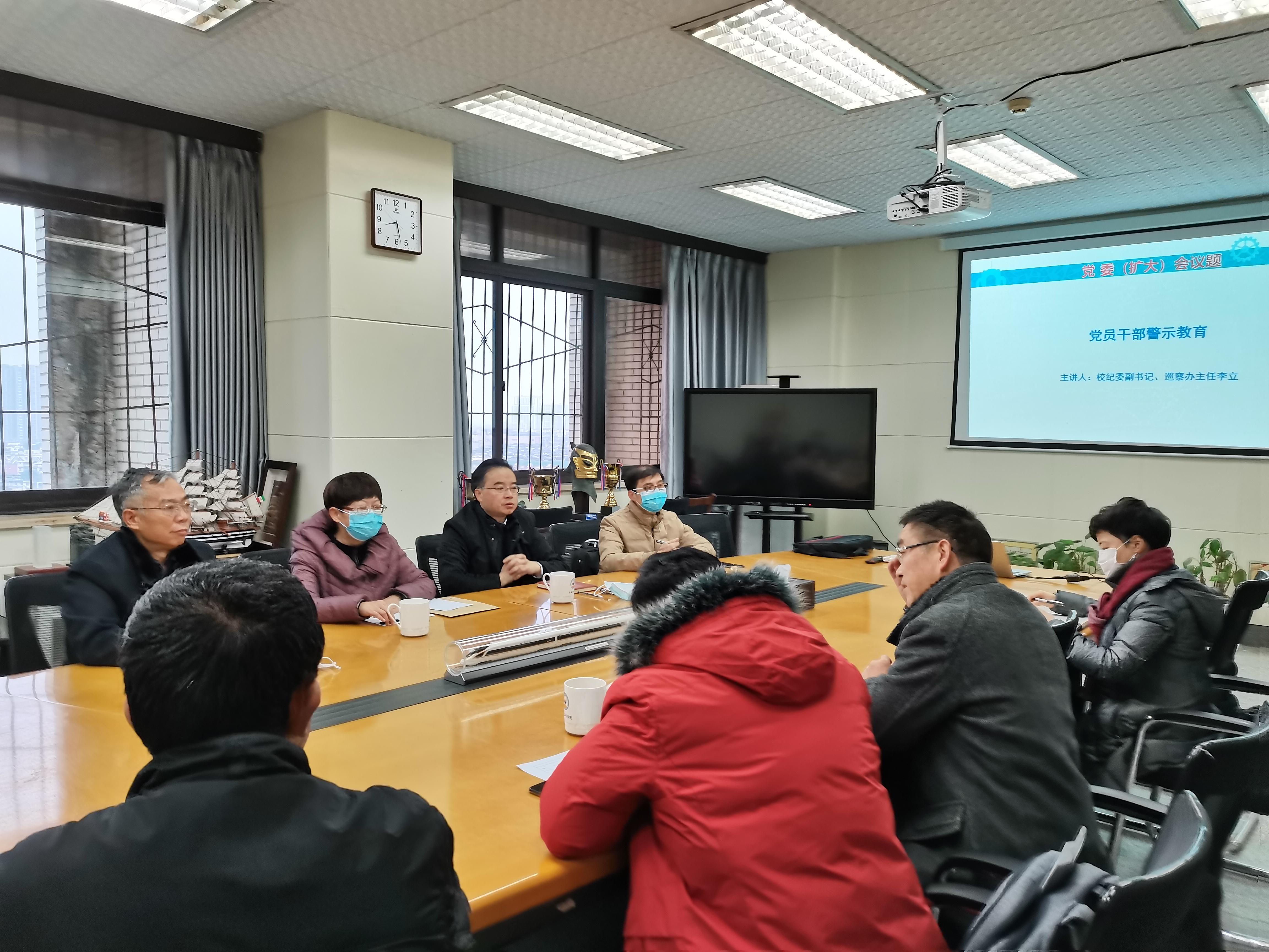 为进一步增强学院领导的清正廉洁意识,营造风清气正的良好氛围,2020年12月18日上午,学院在九里信息楼01407开展了党员干部警示教育学习活动。本次活动由学校纪委副书记、巡察办主任李立主讲,校纪委,学院党委书记董大伟,院长钱林茂,学院党委副书记、纪委书记程军,院党委委员、纪委委员全体成员参会,学校监察处副处长兼纪委办副主任杨育鸿一同参加警示教育活动。