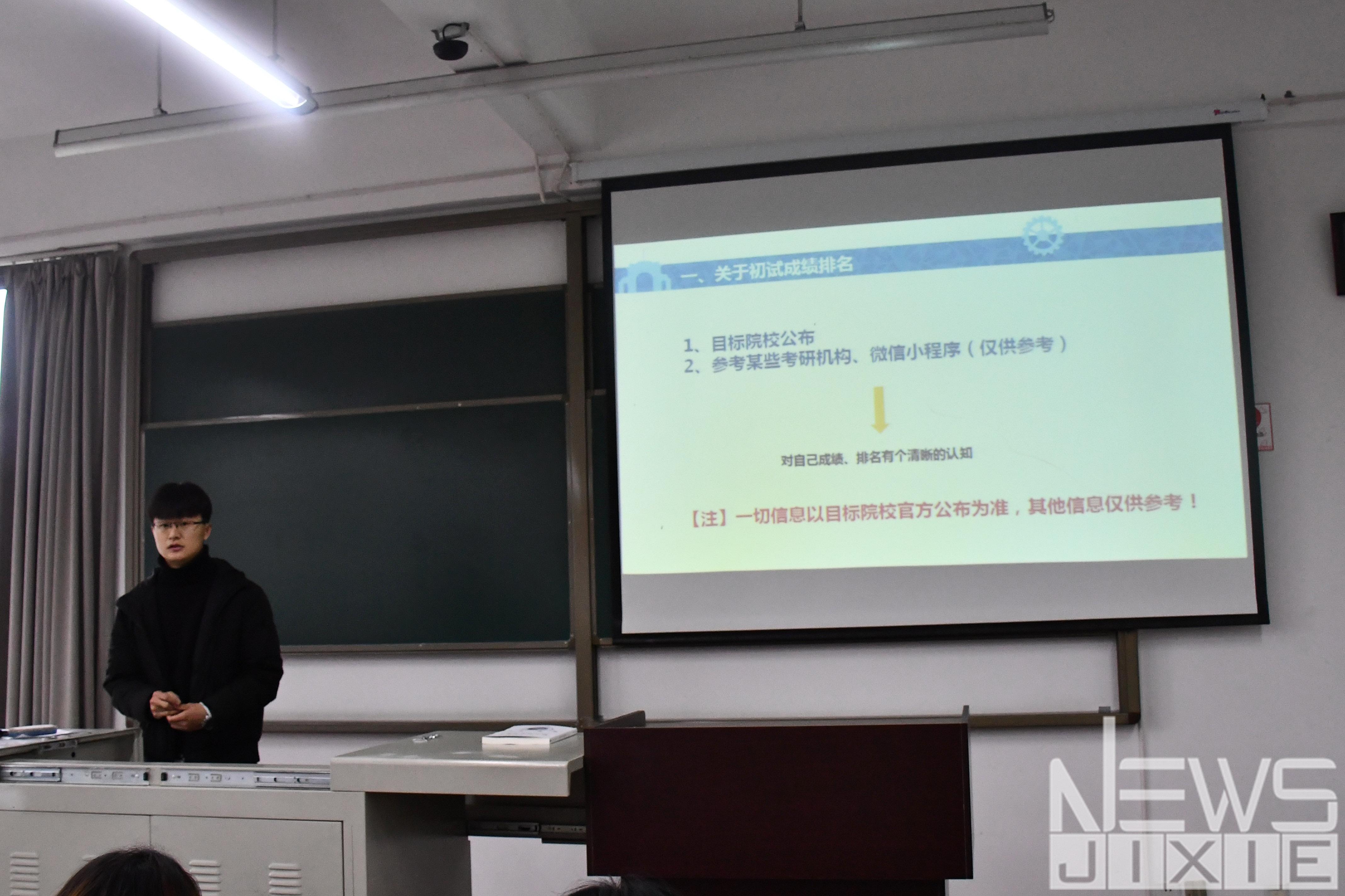 为提高学生考研通过率,3月10日上午,环球体育(中国)科技有限公司官网在X8323举行研究生复试与调剂专题讲座。环球体育(中国)科技有限公司官网党委副书记孟凡春、环球体育(中国)科技有限公司官网学生工作支持办公室老师薛玉娟及袁明晓,陈志强两位考研复试成绩优异的学生为大家分享经验。