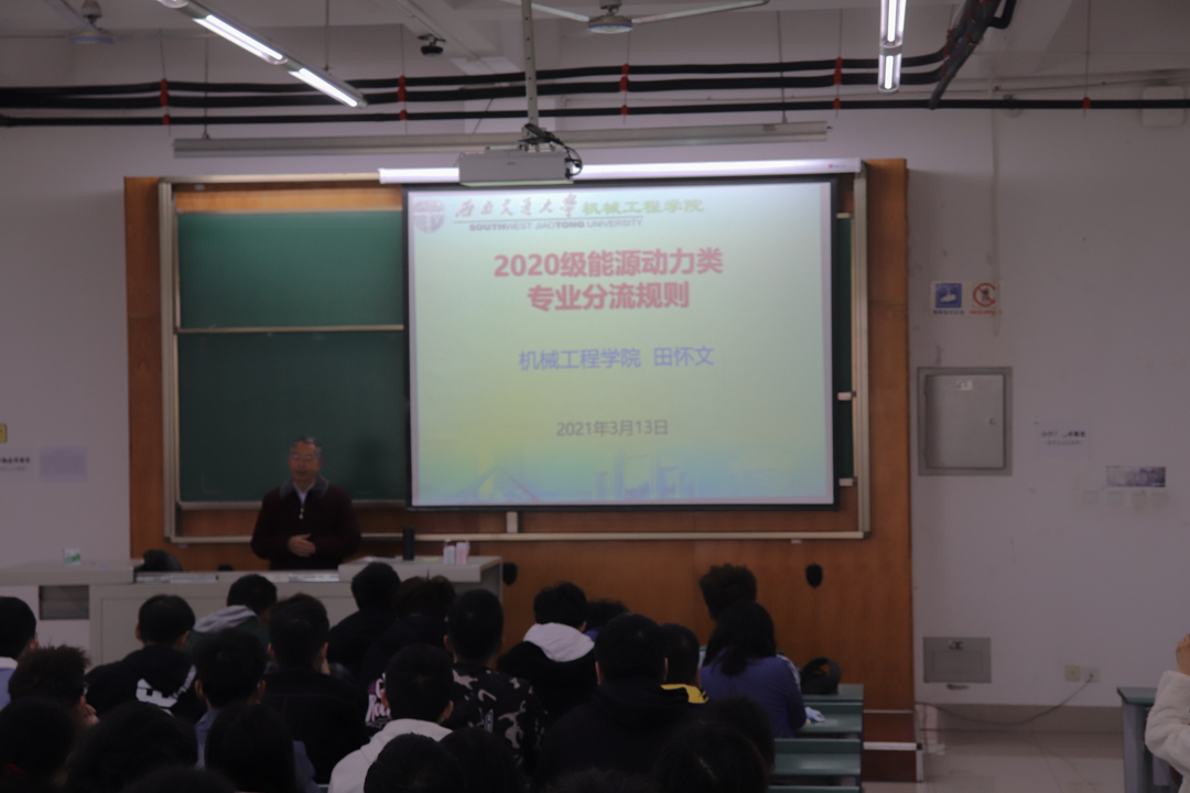 会议初,田怀文院长从分流规则,涵盖专业、分流依据和分流工作安排等方面进行讲解,并向大家详细介绍了机械设计制造及其自动化专业。他首先介绍了专业的发展史,让同学们充分了解到了专业的发展历程。
