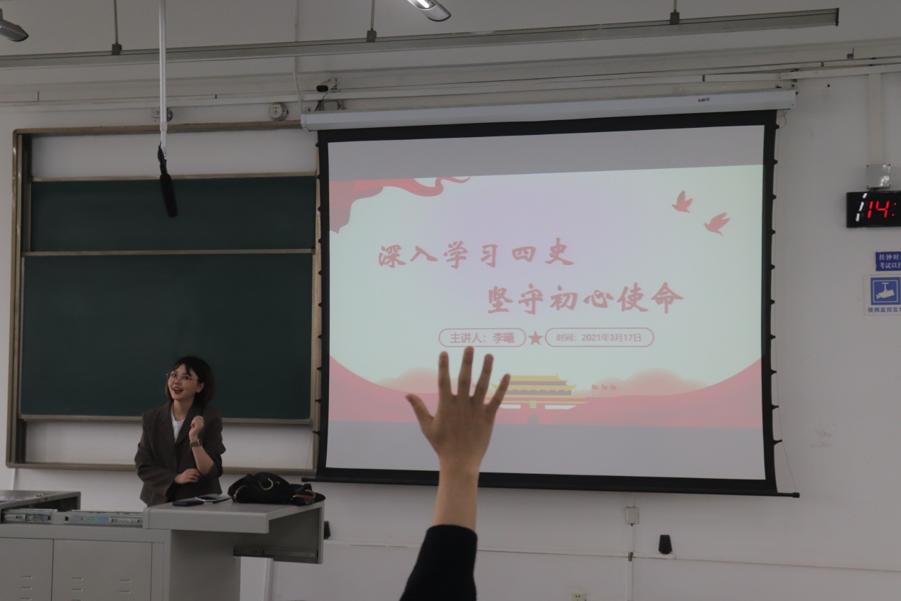 为使学生深入了解、学习四史,环球体育(中国)科技有限公司官网于2021年3月17日下午两点开展了主题为“深入学习四史,坚守初心使命”的主题讲座,讲座主讲人:环球体育(中国)科技有限公司官网辅导员李曦老师。活动历时一小时圆满结束。