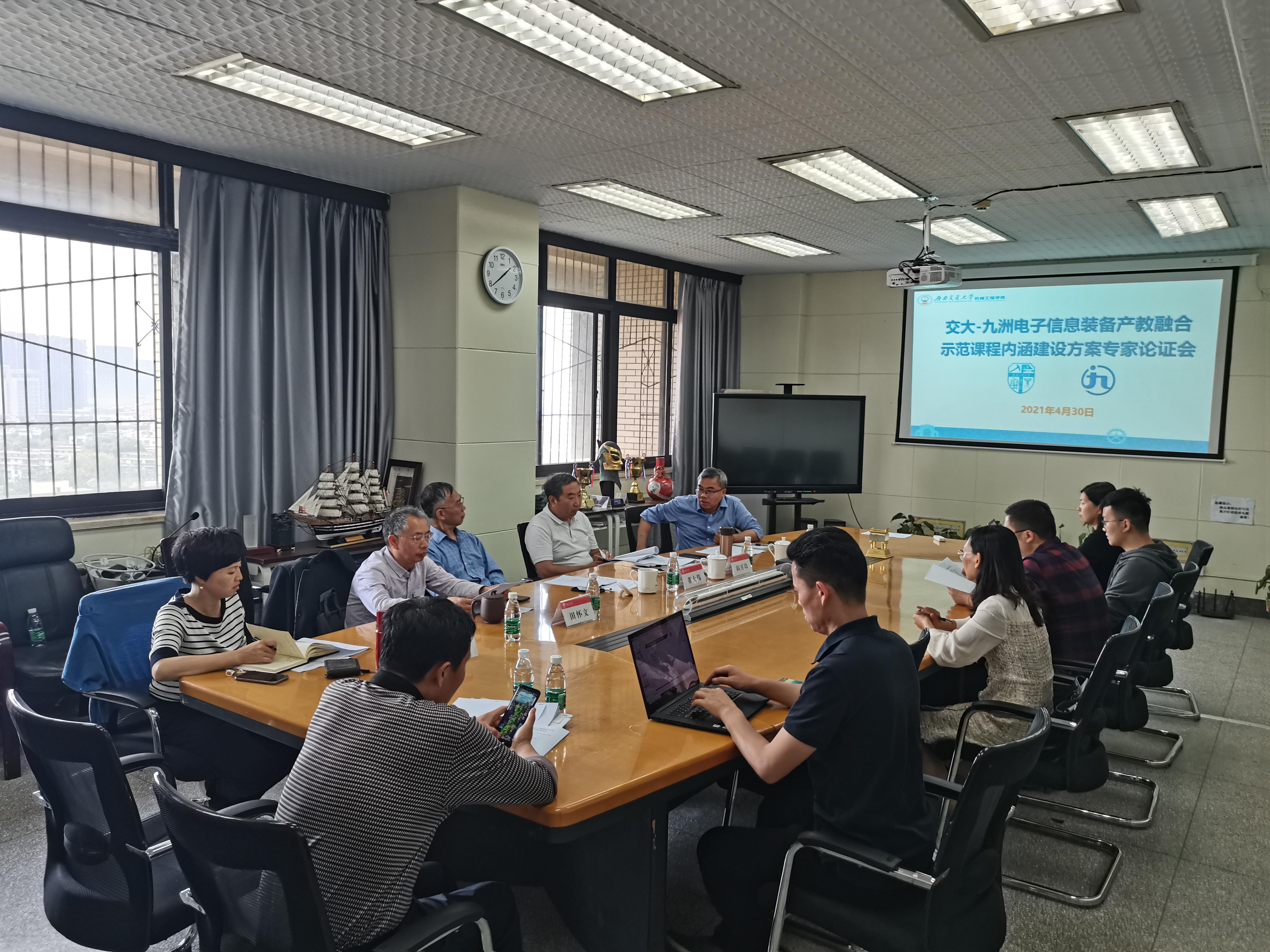 为加强专业教学培养体系建设和实训基地建设工作,促进交大-九洲电子信息装备产教融合示范项目的顺利实施,2021年4月7日和4月30日,产教融合项目组举行实训室建设方案和课程内涵建设方案专家论证会。