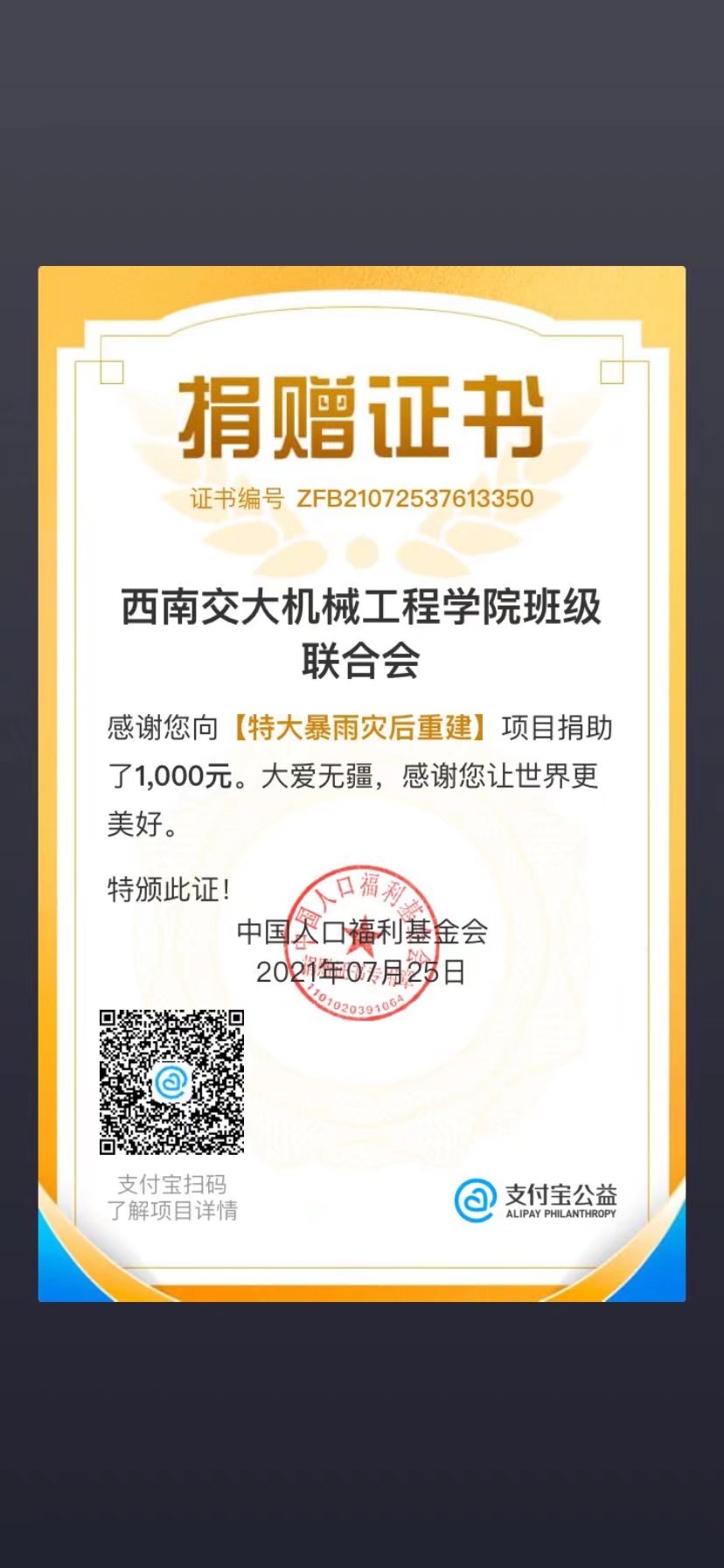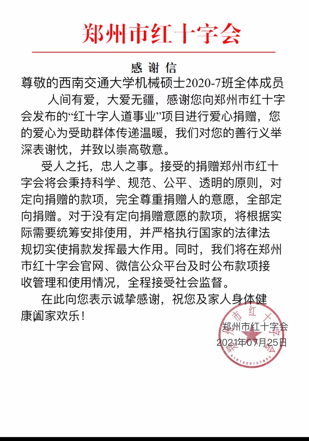 灾情发生后,学院上下高度重视河南洪灾情况,第一时间对河南表示关心,并对饱受灾害折磨的河南人民表示深切的同情。西南交通大学发布通知,为切实保障家庭经济困难学生在特殊时期学习生活需求,学校将开通自然灾害临时困难补助发放通道。学院紧随学校步伐,全力帮助有困难的学生,期待他们早日克服灾情,渡过难关。