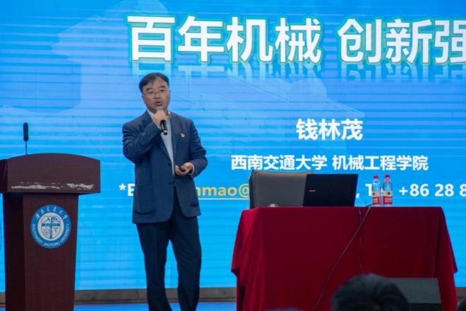随后,是钱林茂院长发表致辞。院长向我们讲述了交大机院过去百年的辉煌历史,介绍了一位又一位的优秀前辈。这些历历在目的往事和杰出的校友,无不吸引着在座的同学们,让同学们都想像他们一样,为国家做出巨大的贡献,为交大机院的院史添上浓墨重彩的一笔。