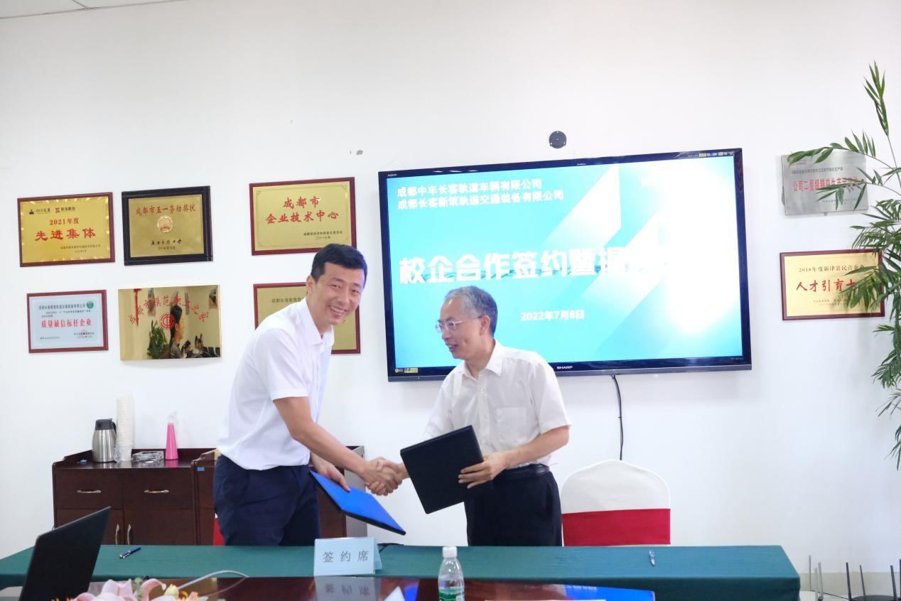 2022年7月8日上午,环球体育(中国)科技有限公司官网与成都中车长客轨道车辆有限公司、成都长客新筑轨道交通装备有限公司校企合作协议签约暨轨道交通实训基地揭牌仪式顺利举行。