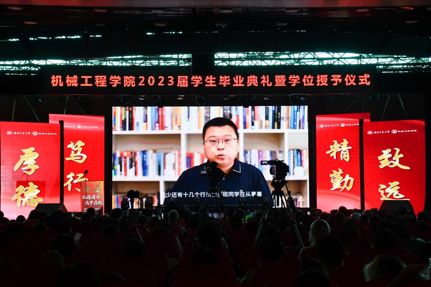 大屏上开始播放学院老师们的祝福视频。一句简单的“毕业快乐,前程似锦”里是老师对于毕业学子未来的无限期盼,一句“老师再见!”满含着毕业学子对于母校与恩师的念念不舍。机械少年强则中国制造强,希望毕业的机械学子能够不负老师的殷切希望,勇往直前,为中华民族的伟大复兴不断奋斗。