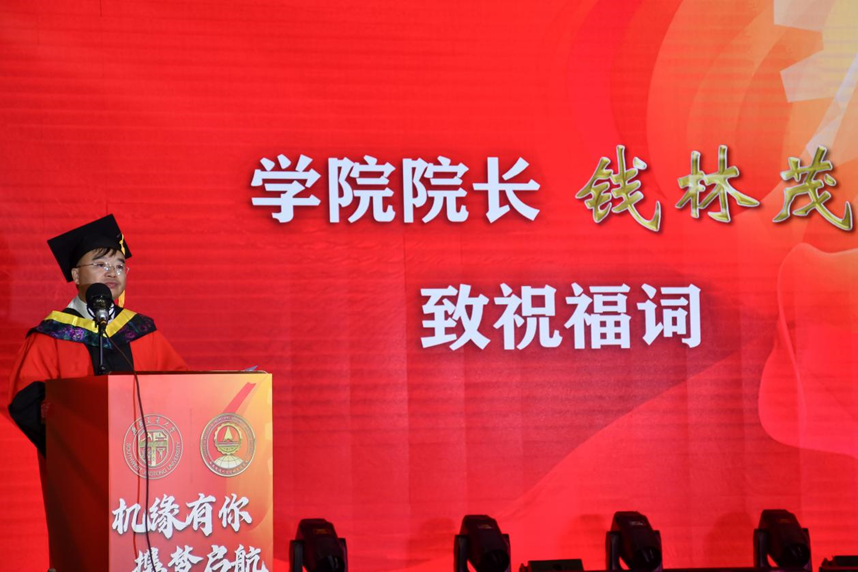 在钱林茂院长的祝福词中,向同学们提出了三个关键词——怀揣理想、踏实工作和团队工作,并希望同学们从这三方面出发,提升自己,超越自我,成为一名优秀的交大人。最后,钱院长提出了自己对同学们的期望“永葆青春朝气,在顺境时顺势而为,在逆境时破茧而出,将百年机械厚德笃行、精勤致远的精神发扬光大。”钱院长的祝福饱含了学校与学院对同学们殷切期盼,是学校和学院育人精神的充分体现。