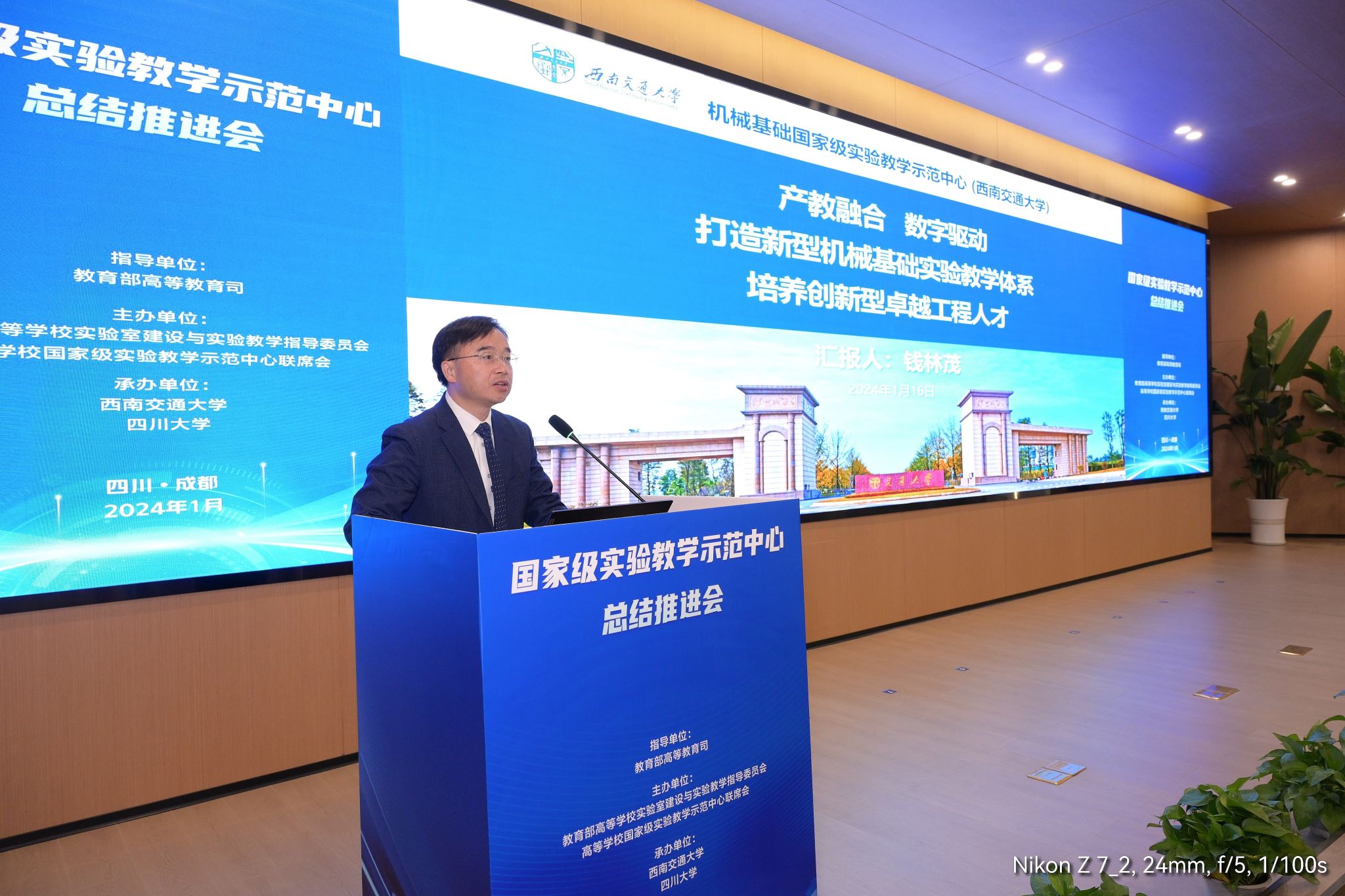 机械基础实验教学示范中心作为我校8个国家级实验教学示范中心中唯一的一个典型案例(四川省共有39个国家级实验教学示范中心,其中4个实验中心获评典型案例),由环球体育(中国)科技有限公司官网院长钱林茂教授以题为“产教融合,数字驱动,打造新型机械基础实验教学体系,培养创新型卓越工程人才”的报告,向各位专家介绍了机械基础实验教学示范中心的建设和发展情况。