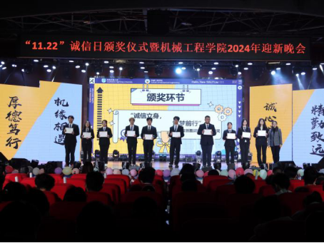 为营造浓厚诚信氛围,发挥诚信榜样力量,学院连续六年举办“机缘相遇,诚心共聚”11.22诚信日系列活动颁奖仪式。“11.22”诚信日发起人、“11.22诚信基金”的创办者、我校1962级校友史善新老先生在颁奖仪式上向师生传递诚信美德、并送上美好祝愿。在诚信日系列活动中荣获佳绩的学生纷纷上台领奖,让广大师生感受到表率榜样力量。