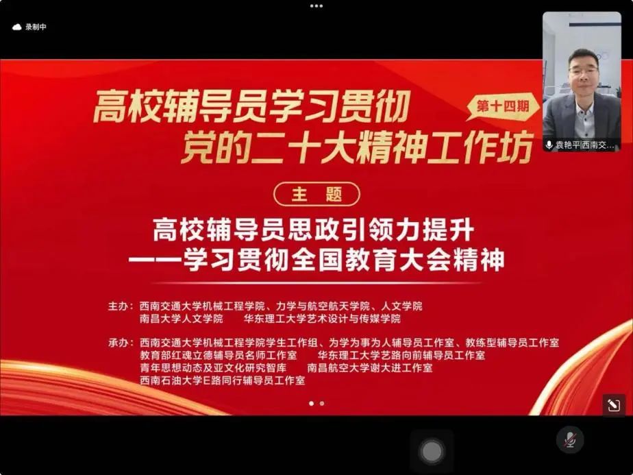 2024年10月,以“高校辅导员思政引领力提升——学习贯彻全国教育大会精神”为主题的高校辅导员学习贯彻党的二十大精神工作坊第14期在线上顺利举办。