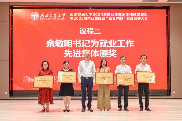 5月8日,西南交通大学2024年毕业生就业工作总结表彰暨2025届毕业生就业“百日冲刺”行动部署大会在犀浦校区双一流会议中心二楼报告厅隆重举行。会议总结了过去一年学校就业工作成果,表彰先进集体与个人,并对2025届毕业生就业冲刺阶段工作进行动员部署。学院党委副书记沙晓雪、就业工作专项负责人及职业生涯规划课程任课老师等参加会议。
