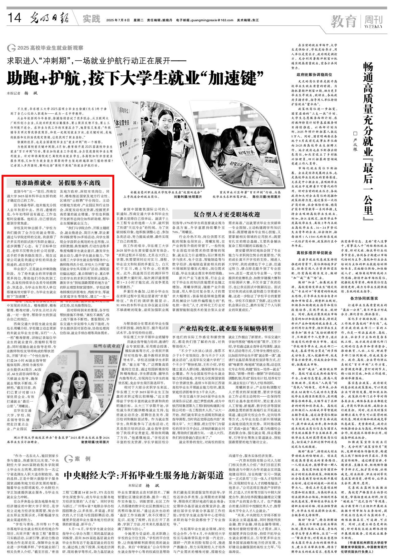 近日,《光明日报》采访报道了我院2025届本科毕业生郭钧奕同学的求职故事。他的经历是学院系统性、精准化就业帮扶工作成效的一个生动体现。