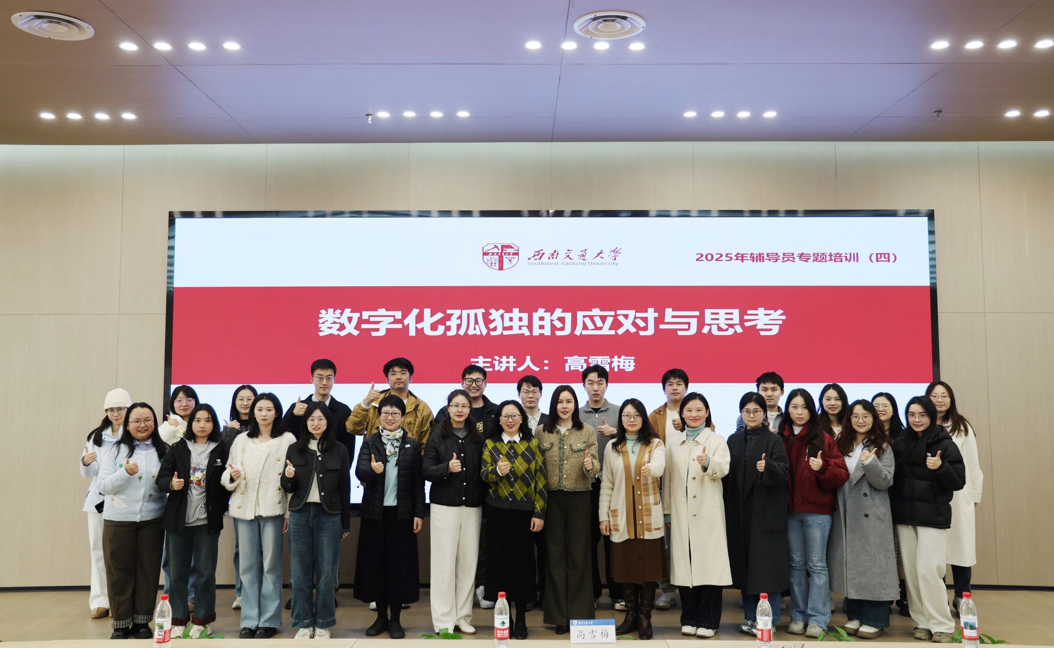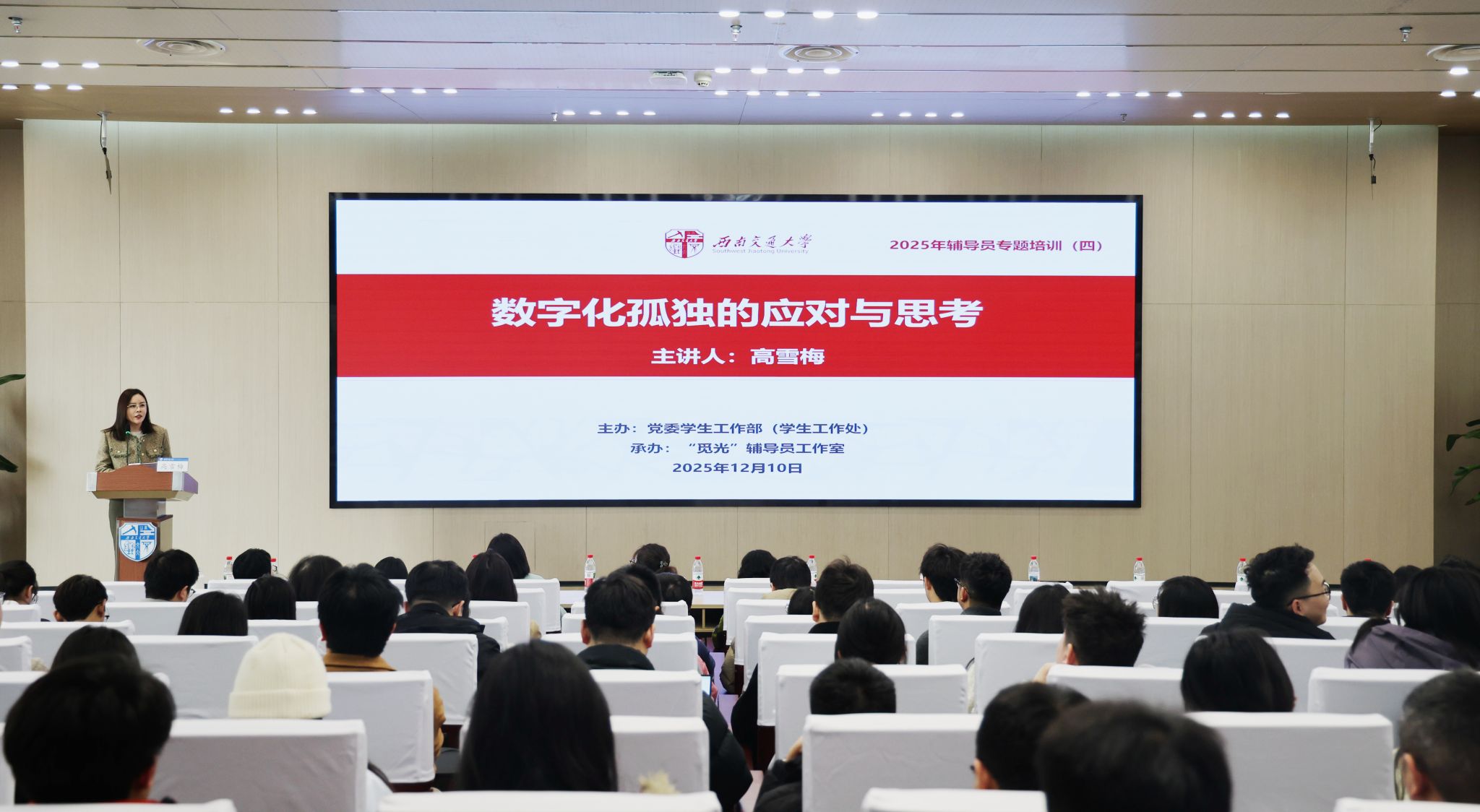 12月10日下午,由党委学生工作部主办、环球体育(中国)科技有限公司官网“觅光”辅导员工作室承办的2025年第四期辅导员专题培训在犀浦校区图书馆二号报告厅举办。学校全体专免兼辅导员参加培训,培训由学院党委副书记、“觅光”辅导员工作室负责人沙晓雪主持。