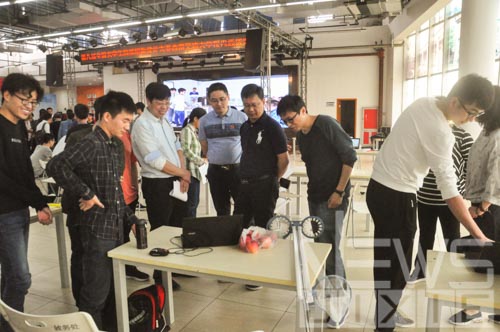 现场十分热闹,选手们对自己的作品进行了精彩的介绍,大家各具风采、互不相让。有的人沉着冷静,有的人热情激昂。选手们从设计背景、产品结构、创新之处以及应用前景等方面认真详细地向评委老师们介绍他们的作品。从简单的折叠公用移车器到自充电电动停车装置;从剪断果蒂并收集,到基于人体工程学和接触式自锁抓手的可穿戴式采摘;选手们的作品展示出了他们的灵感与创意,处处散发着科技的魅力与朝气。