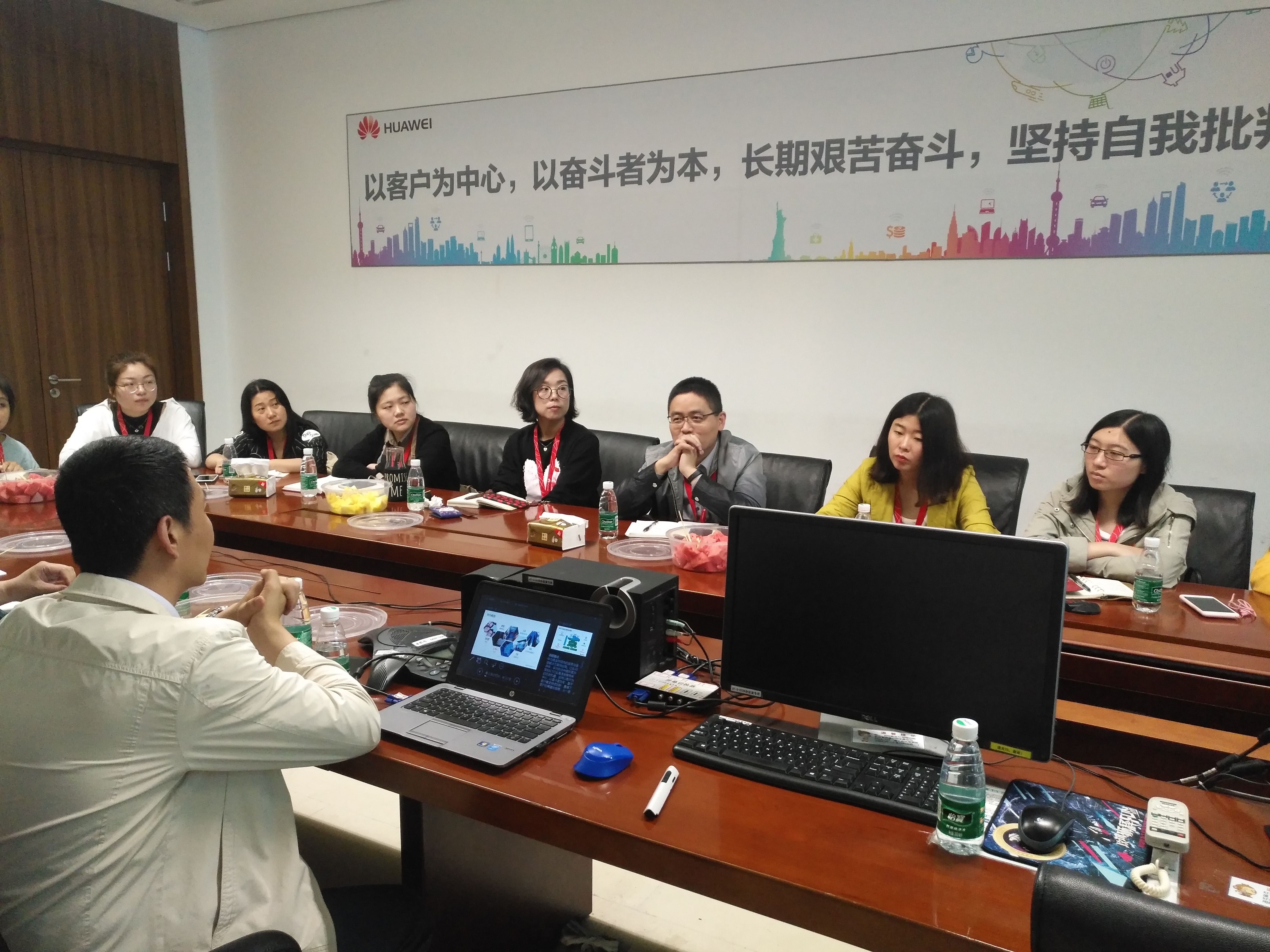随后,学生工作组党支部一行人来到会议室,与华为人力资源部其他同事一起召开座谈会。会上,范学森总监详细介绍了华为“把数字世界带入每个人、每个家庭、每个组织,构建万物互联的智能世界”的企业愿景和“以客户为中心,以奋斗者为本,长期艰苦奋斗,坚持自我胜利”的企业价值观。“人力资本增值优先财务资本增值”的企业人才观。详细介绍了“胸怀世界、坚韧平实、洞见新知”的华为用人标准。