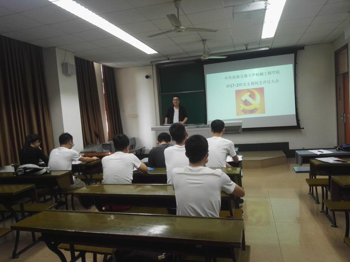 为深入贯彻落实从严治党的工作要求,深入推进“两学一做”学习教育常态化制度化,根据《中共西南交通大学委员会民主评议学生党员实施办法》和《中共西南交通大学委员会先进党支部、优秀学生共产党员评选表彰工作条例》要求,2018年5月7日下午13:00,环球体育(中国)科技有限公司官网研2017级2班党支部在4519开展了民主评议党员活动,支部全体党员参加了本次活动。