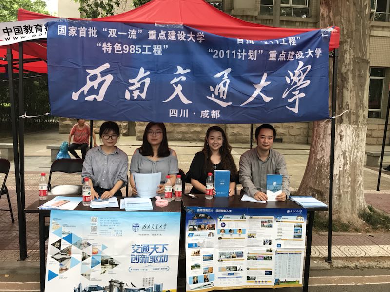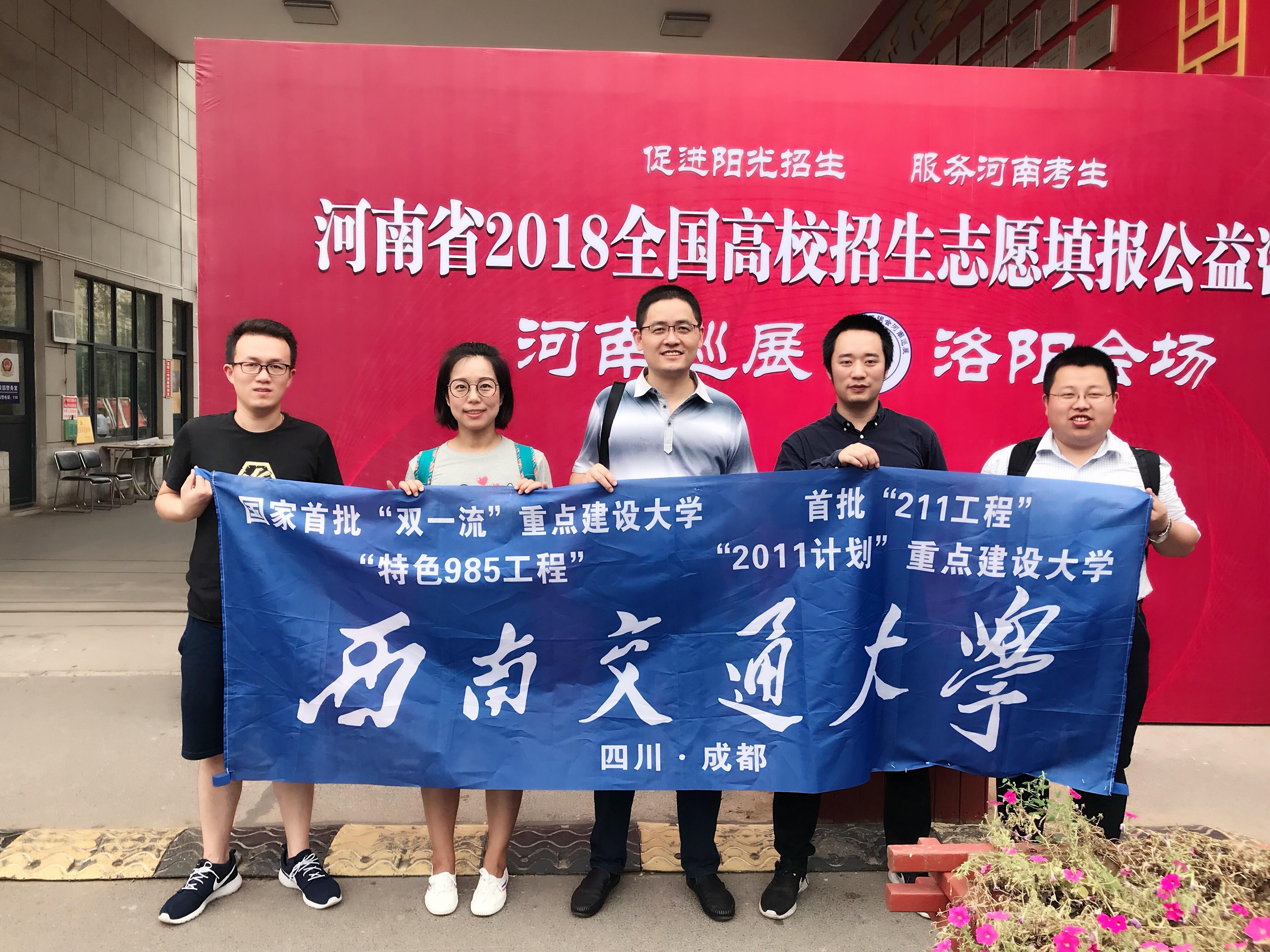 除此之外,学生工作组代表西南交通大学与四川大学联合在郑州举办招生宣讲会,实现了川内高校招生宣讲的互动。在洛阳就河南省定向招收轨道交通相关领域本科生工作于洛阳市轨道交通有限责任公司联合举行招生宣讲会,就定向招生政策为考生和家长进行说明,此项工作吸引了洛阳电视台、洛阳晚报等多家媒体关注。