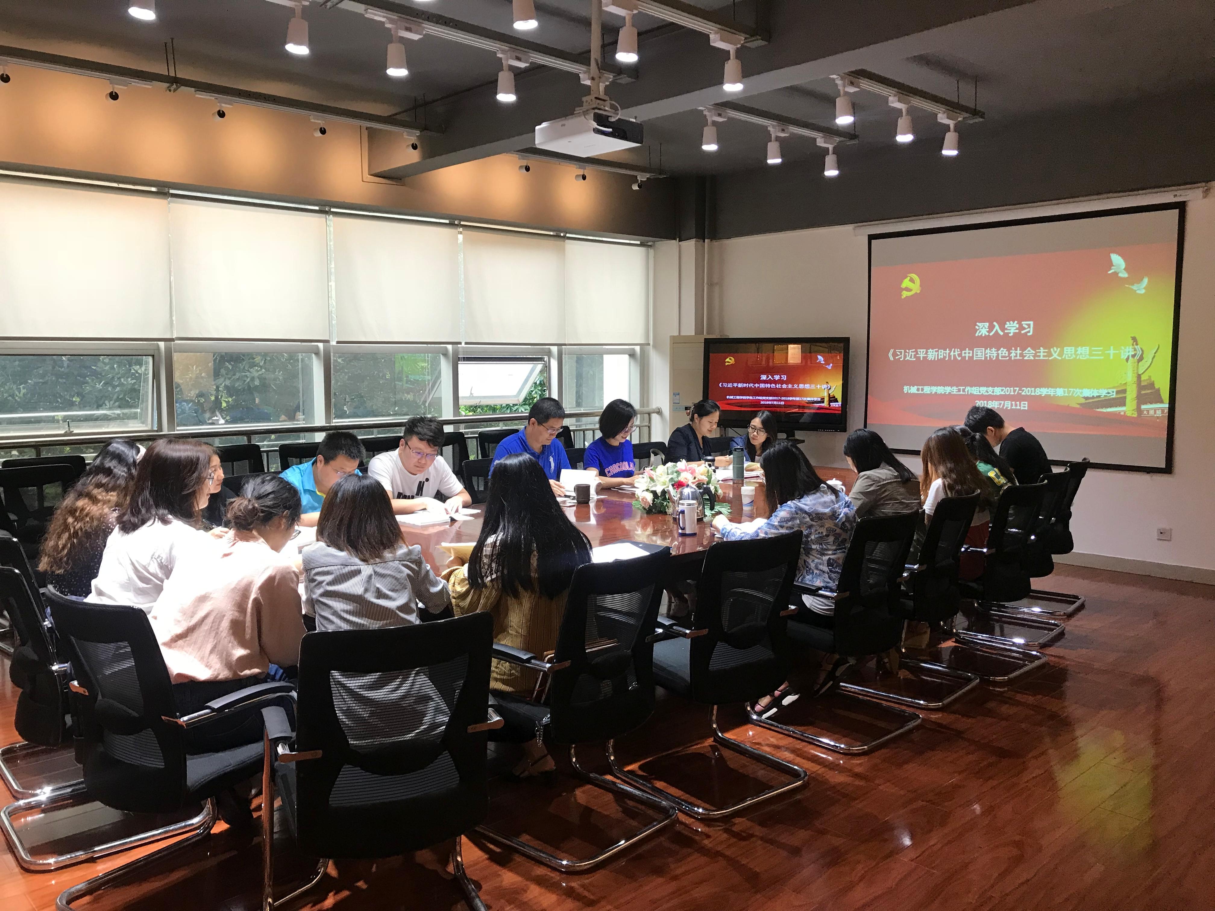 2018年7月11日下午14:30,环球体育(中国)科技有限公司官网学生工作组党支部在犀浦校区X2201会议室开展了《习近平新时代中国特色社会主义思想三十讲》专题学习活动,暨环球体育(中国)科技有限公司官网学生工作组党支部2017-2018学年第18次“二号楼下午茶”特色党支部活动。