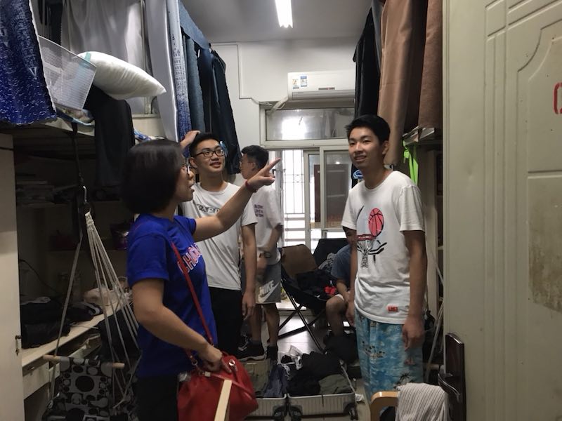 倒迁完成后辅导员走访学生宿舍,与学生交流(2)