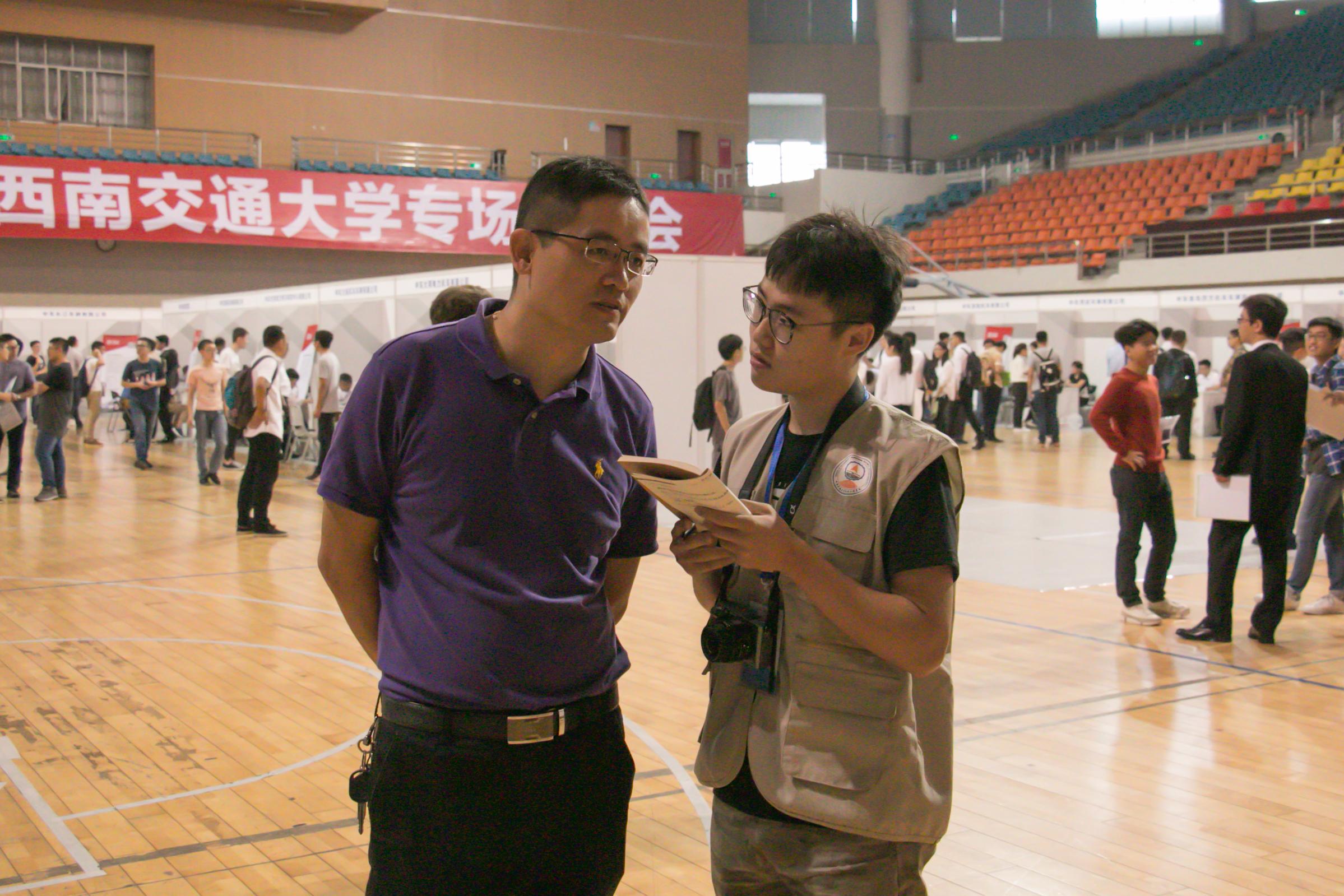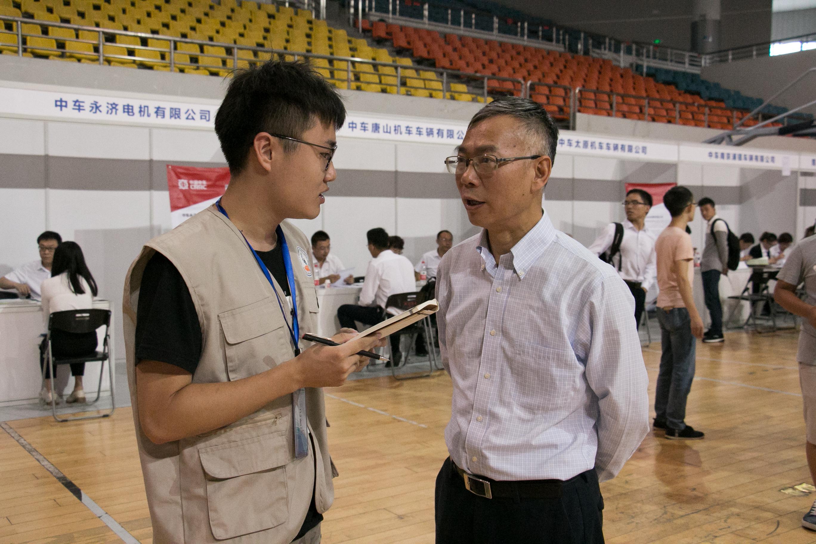 当被问到对此次招聘会有何看法时,董书记表示:学校向来很重视这一类型的招聘活动,而此次中车集团的一大部分企业都是我们机械学院的“老朋友”,所以此次招聘会一来加强了我院与中车集团的联系,二来也希望他们尽量多考虑一下我们机械学子,让我们机械学子能有更多机会前往“主战场”工作。同时,董书记还表示我们国家现在正处于一带一路建设中,由于对高铁建设的需求,国家对这方面人才的需求量也非常大,包括现在各大城市正在大力修建的城市轻轨等项目也使得该方面人才被大量需求,所以就国家战略发展而言,我们的前景也是非常好的。
