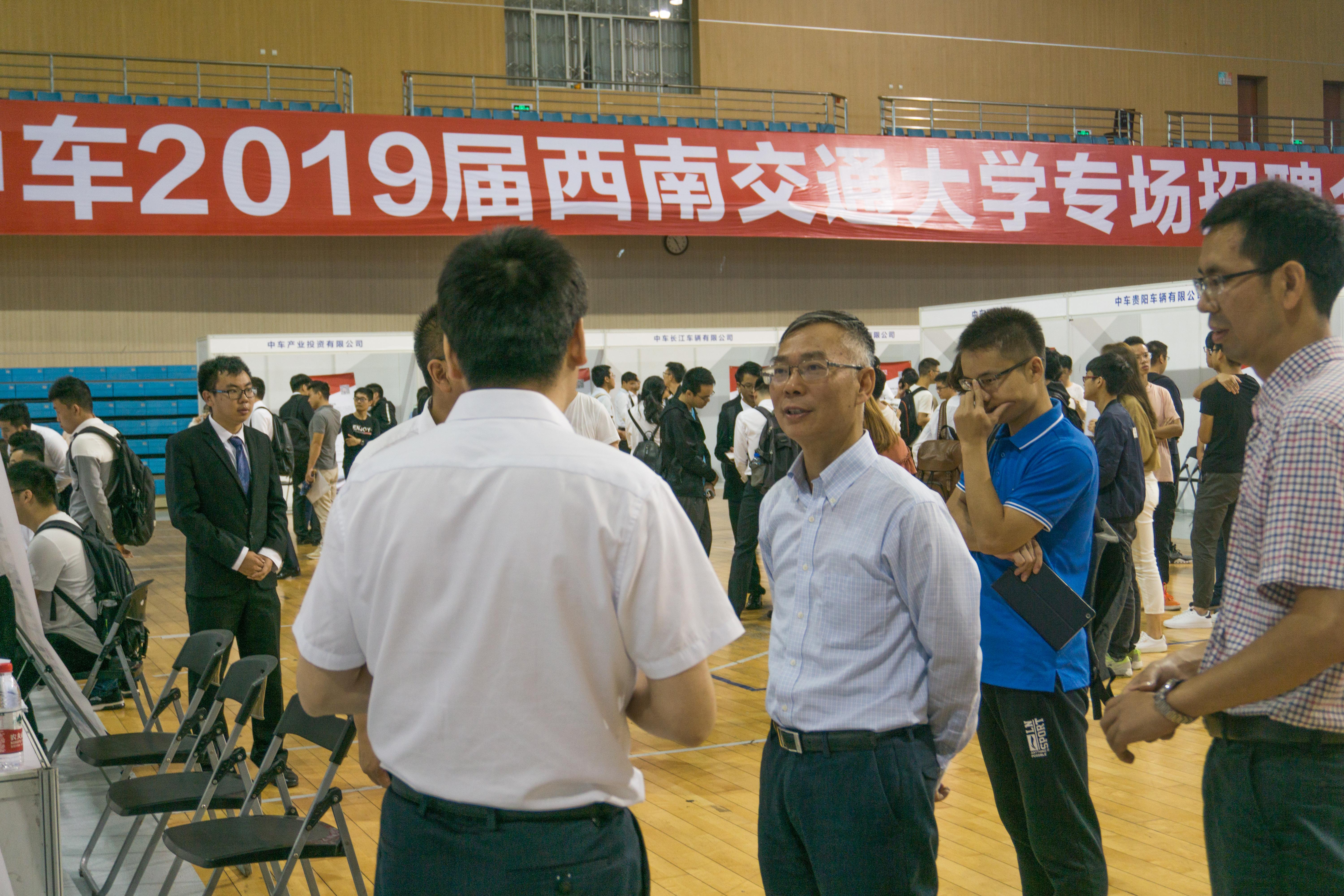 2018年9月18日上午9点30分,中国中车2019届西南交通大学专场招聘会在我校飞碟体育馆内正式拉开帷幕。此次招聘会邀请了包括中车唐山机车车辆有限公司在内的多家中国中车集团旗下的分公司。对于此次招聘会,校方十分重视。我院董大伟书记、李毅副书记、机车车辆系教师黄运华等多位领导、老师也亲临现场。