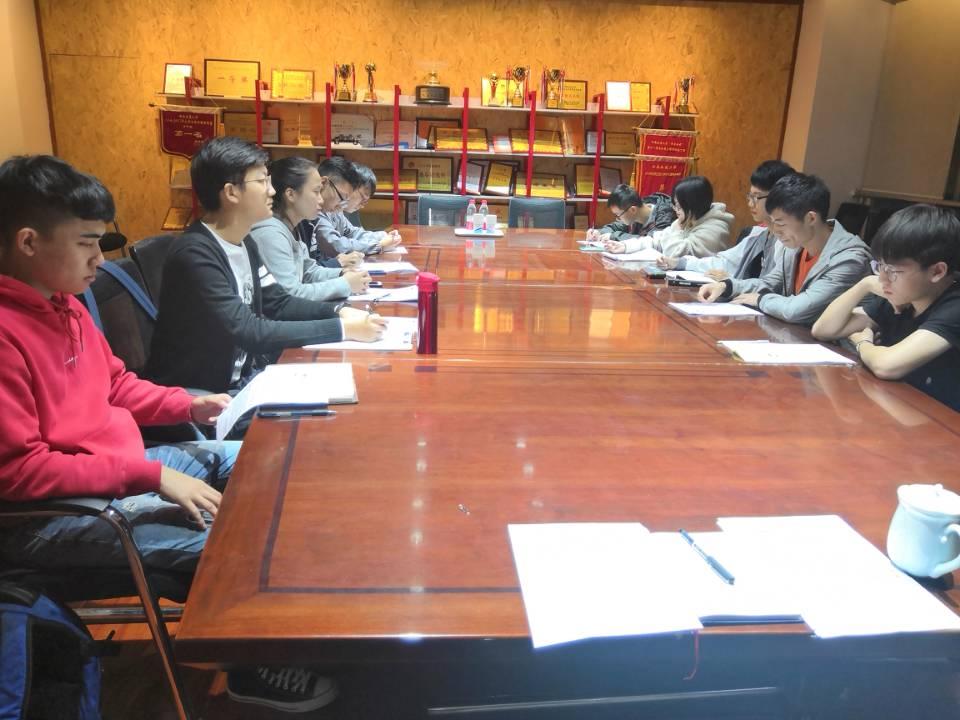 2018年10月10日晚,环球体育(中国)科技有限公司官网社会实践中心在X2201召开了第二次干部例会。本次例会由社会实践中心指导老师田友丽老师主持,社会实践中心全体学生干部出席会议。首先全体与会人员共同认真学习了《忠诚担当听党话,奋斗清廉树人生——环球体育(中国)科技有限公司官网学生干部倡议书》。