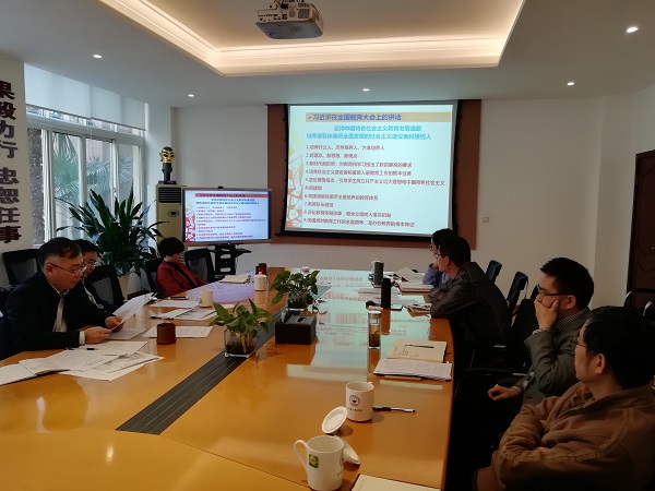 同志们还就如何将文件精神落到实处展开了积极的研讨。围绕着高校思政教育的主题,提高本科教育质量,构建课程、专业、学科“三位一体”思政教学体系。一是坚持立德树人,把师德师风作为教师素质评价的第一标准,健全师德考核制度,推动师德建设常态化长效化;二是把思想政治教育有机融入每门课程,做到“课程思政”“专业思政”,结合新专业的建设打造,优化学科结构和专业设置;三是落实教授、副教授给本科生上课、教学质量监督等制度;四是选树培养网络教育名师,利用网络信息技术,把育人理念和思政植入到课程当中,利用网络进行宣传教育,教书育人。五是按照国家梯队布局,打造跻身第一、第二层次的专业;六是把新技术、虚拟技术,虚拟实验等等运用到课程当中,使受条件限制不能开展的实验,通过虚拟模拟让学生能亲身学习感受;七是重视学科评估,打造学科平台;八是成果凝练,积极将研究成果及时落实到学生的实践当中;九是分批分年度改造现有设施陈旧的教室,打造智慧教室;十是进行创新班建设。