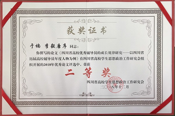 我院于楠、李毅、唐序老师获四川省高校学生思想政治工作研究会2018年度优秀论文评选二等奖