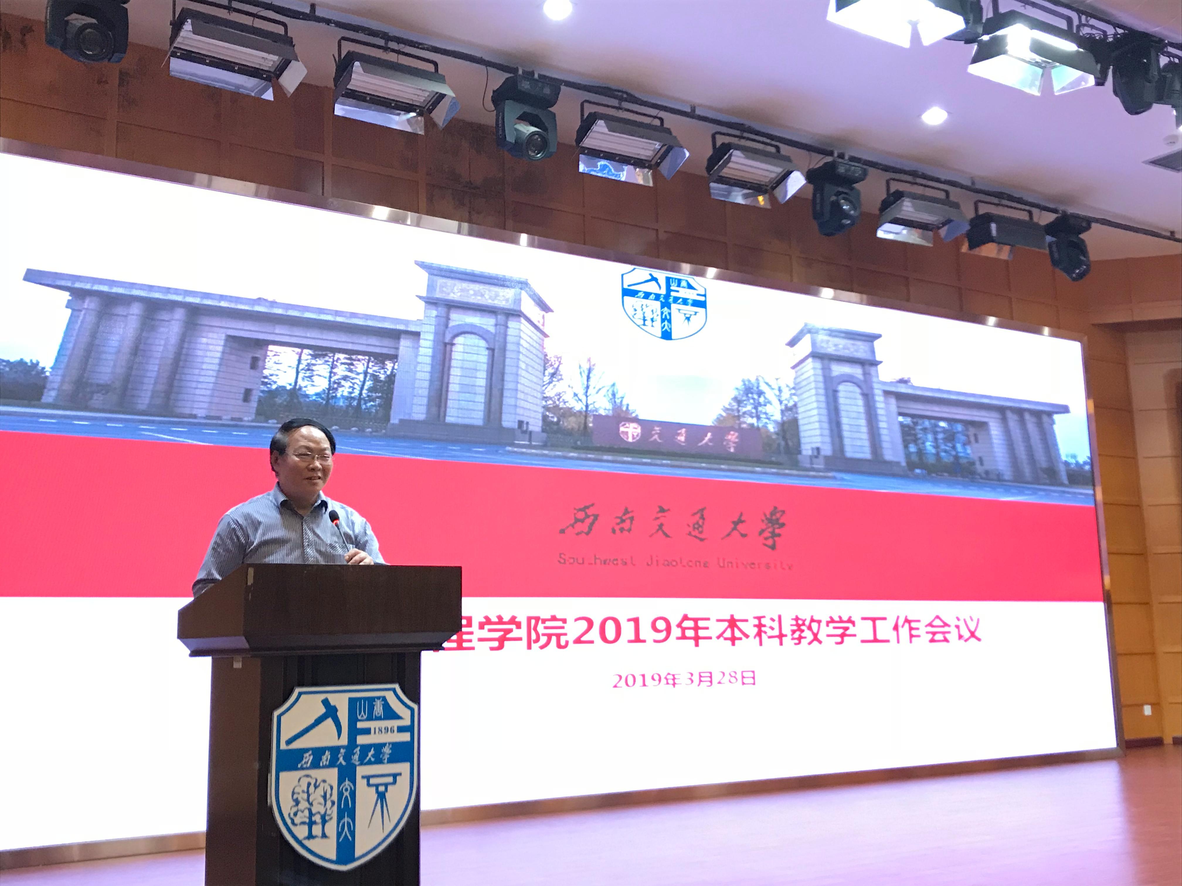 随后,会议在庄严肃穆的国歌声中正式开始。学院院长钱林茂首先作本科教学工作报告《以本为本,扎实推进本科教学工作,提升人才培养质量》。他在报告中指出要以本为本,扎实推进本科教学工作,提升人才培养质量,他强调要全面贯彻全国教育大会和习近平总书记重要讲话精神,结合学校本科教学工作的部署,深化教育教学改革,扎实推进学院本科教学工作。他回顾了目前学院本科生教育的开展情况及存在的主要问题,并提出本科教学工作的构想:一是完善专业建设顶层设计;二是探索本硕博贯通培养模式;三是建设国家一流专业;四是建设高素质本科教学师资队伍;五是强化基层教学组织建设;六是开展教育改革和教学研究;七是实施金课工程;八是深化实践体系改革;九是做实毕业设计;十是完善质量保障的组织构架;十一是修订完善教学管理制度体系;十二是健全绩效考核与分配制度;十三是推进课程思政改革;十四是强化学风建设;十五是做强创新创业教育;十六是加强本科教育教学的国际化建设。