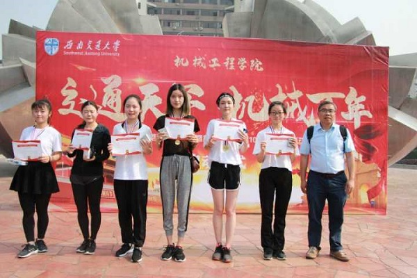 4月25日上午,为献礼新中国成立70周年、献礼西南交通大学建校123周年、献礼机械学科创建100周年,由环球体育(中国)科技有限公司官网主办的“交通天下,机械百年”——校园微型马拉松大赛在九里校区顺利举行。环球体育(中国)科技有限公司官网党委书记董大伟老师,院长钱林茂老师,牵引动力国家重点实验室主任王开云老师、党委副书记兼副主任王锋、副主任马光同老师,环球体育(中国)科技有限公司官网党委副书记徐嘉宁老师、程军老师、孟凡春老师,副院长曾东红老师、丁国富老师,院长助理张则强老师,以及来自各学院的近300余名师生参加了本次活动,活动由环球体育(中国)科技有限公司官网党委副书记孟凡春老师主持。