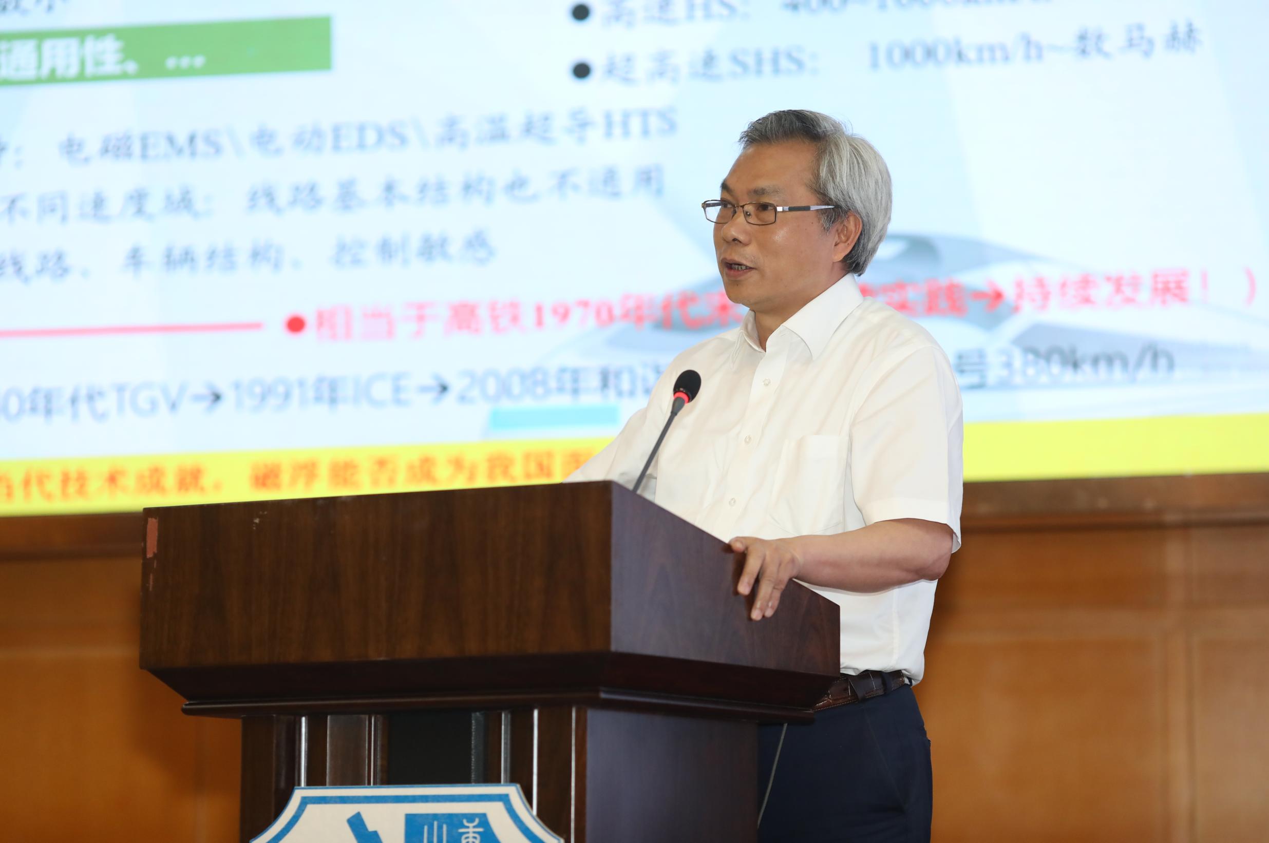 罗世辉教授作了题为《磁浮交通的艰难历程与发展前景》的报告,梳理了传统轮轨交通两百年来的里程碑式重要节点,分析了磁浮交通的优势和劣势,对其发展历程、分类形式、技术特点进行了总结,并介绍了牵引动力国家重点实验室在磁浮方面的研究进展。
