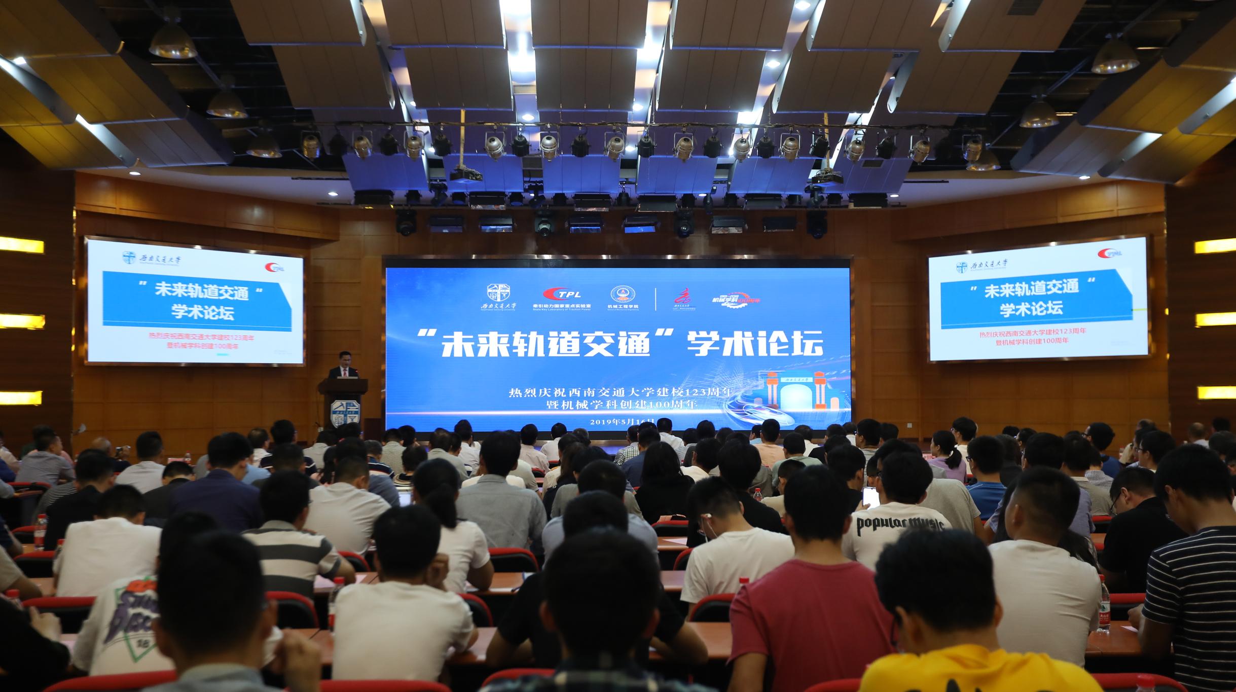为庆祝西南交通大学建校123周年、纪念机械学科创建100周年,5月16日下午,由牵引动力国家重点实验室承办的“未来轨道交通”学术论坛在西南交通大学九里校区国际会议厅成功举行。莅临论坛的主题报告专家有:中国科学院院士、西南交通大学翟婉明教授、中车青岛四方机车车辆股份有限公司丁叁叁副总工程师、中车南京浦镇车辆有限公司原副总工程师楚永萍、西南交通大学张卫华教授、西南交通大学高仕斌教授、西南交通大学罗世辉教授。西南交通大学校长徐飞出席论坛,企业代表、返校校友和相关学院领导、师生参加了论坛,论坛由牵引动力国家重点实验室主任王开云研究员主持。