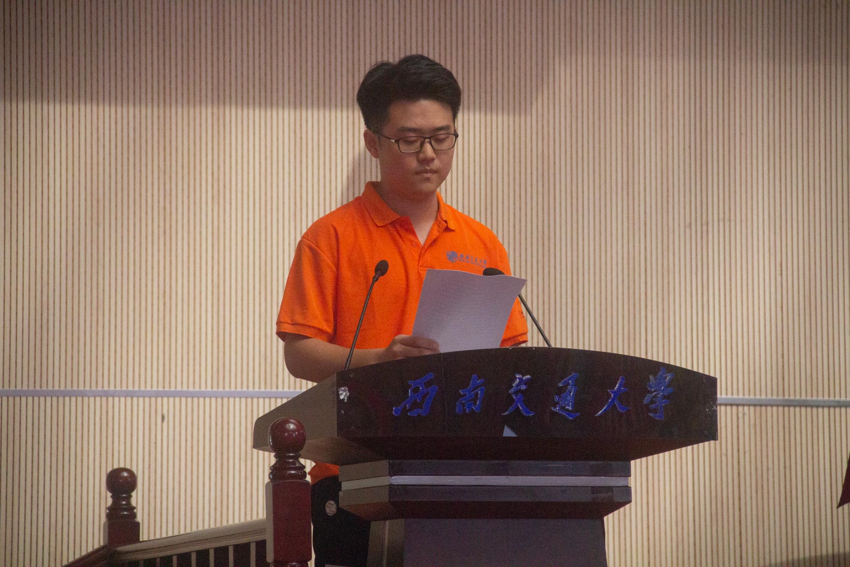 第五阶段,新生代表赵亦君同学发言。赵亦君同学道:努力是大学生活的主旋律,我们应该精勤求学。当今高速铁路、磁浮交通、摩擦学、新能源等方面需要机械人发挥自己的热度,投身其中。而后,赵同学对新生说道:应该注重实践,并且与周围的人打好关系,要有“运筹帷幄,决胜千里”的气魄,愿你们有一个无悔的大学生活。