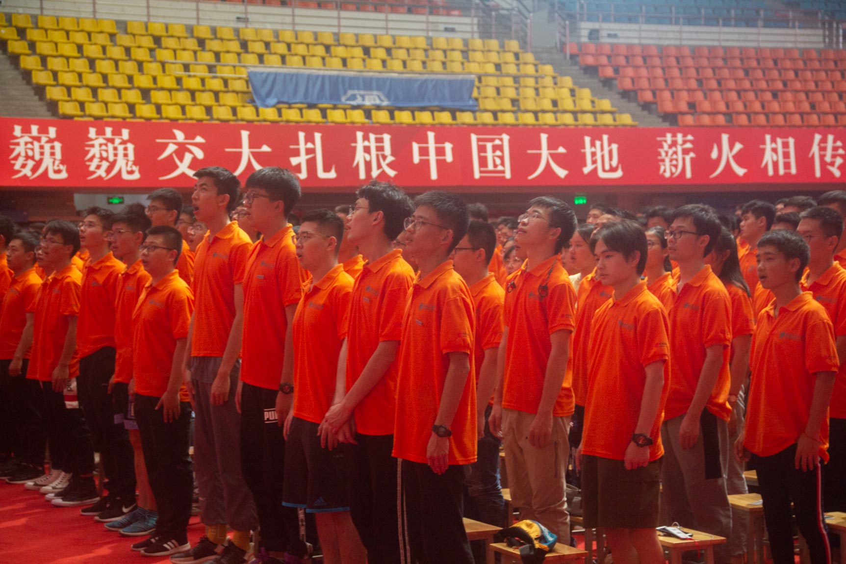 第七阶段,全体起立,唱校歌。