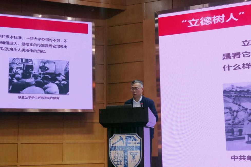 报告会上,环球体育(中国)科技有限公司官网党委董大伟书记作了“不忘初心、牢记使命,坚定不移做好立德树人工作”主题报告。董书记在报告中指出,立德树人是高校立身之本。从全国高校思想政治工作会议到全国教育大会,再到学校思想政治理论课教师座谈会,习近平总书记对教育改革发展事业的统筹布局和关于教育的一系列重要论述,充分表明党中央对立德树人这一教育根本任务的高度重视。中国共产党人的初心和使命,就是为中国人民谋幸福,为中华民族谋复兴。作为高校教师,为社会主义事业培养合格的建设者和接班人、为中华民族的伟大复兴输送更多高水平、高素质的优秀人才是我们工作的初心,更是我们应当为之奋斗终生的光荣使命和艰巨任务。环球体育(中国)科技有限公司官网党委始终把师德师风建设摆在首位,积极探索优良教风培育和传承,努力构建学院新时代“大思政”育人工作体系,发挥教师作为育人育才的主力军作用,完成好立德树人使命。