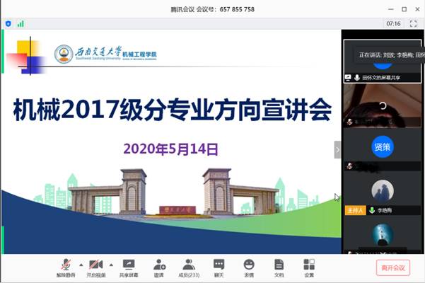 5月14日19:00,环球体育(中国)科技有限公司官网机械2017级专业方向分流宣讲会通过机械2017级专业方向分流qq群和腾讯会议这两个平台如期举行。本次宣讲会由环球体育(中国)科技有限公司官网李艳梅老师主持,邀请到环球体育(中国)科技有限公司官网田怀文老师、马术文老师、谢延敏老师、魏莹莹老师、刘放老师以及高宏力老师为同学们进行详细的讲解。