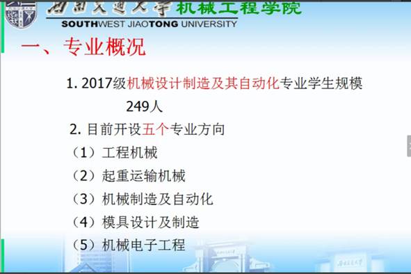 随后,机车车辆工程系的李芾老师、黄运华老师为同学们详细介绍了城市轨道交通车辆、机车工程、铁道车辆三个专业方向的具体内容。两位老师从轨道交通装备的发展概括谈起,对轨道车辆专业方向进行了简要概述,同时也对同学们今后的就业方向及发展前景做了介绍。