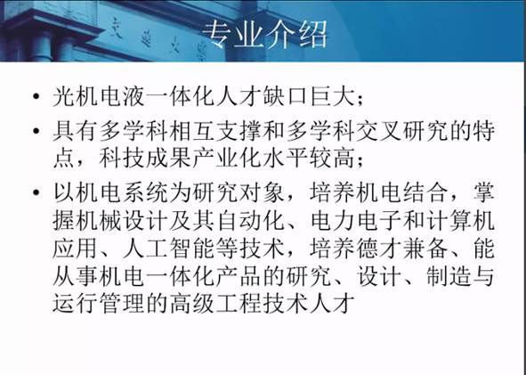 最后为同学们进行专业讲解的是机械电子工程专业的高宏力老师。高老师首先对专业进行了介绍,指出本专业的当前形势与就业发展前景。之后,高老师向同学们展示机械电子工程专业雄厚的师资力量以及诸多的科研成果,极大程度上增加了同学们对机械电子工程专业的选择意愿。