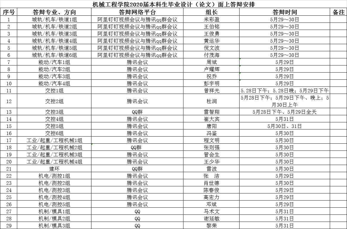 学院面上答辩从5月28日-5月31日展开,具体安排如下: