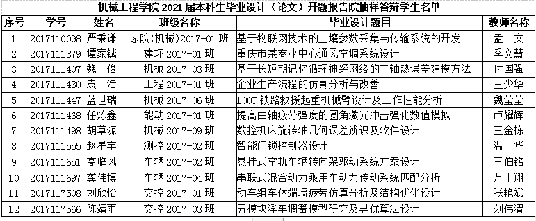 2021届本科生毕业设计(论文)开题报告答辩情况将作为学生毕业设计(论文)过程指导评价的重要参考依据,对学院中期检查、面上答辩安排具有参考意义,请各位毕业生高度重视。