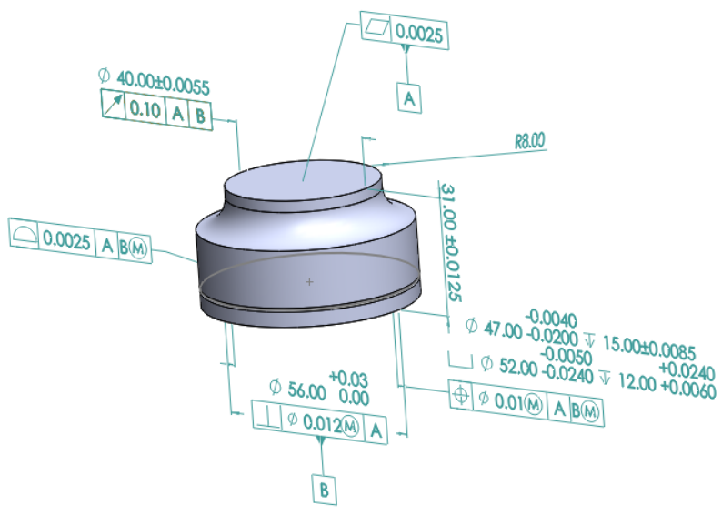 回生答:软件中自带检测工具,可以检查是否表全,如果标漏软件会有提示。在展示的MBD图里面有些尺寸公差和形位公差没有标注,是因为该处不需要特别要求,未注明处公差取12级精度。至于是否标错我打算下面的时间再画一份二维工程图对比,如果所有的数据都对得上那就可以验证没有标错,有出入再进行检查。