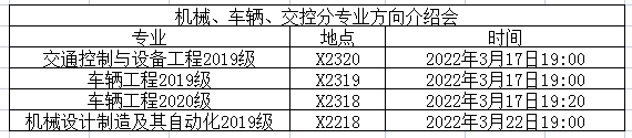 按照分专业方向工作安排。学院拟于近期开展机械、车辆、交控分专业方向工作,现将相关要求通知如下: