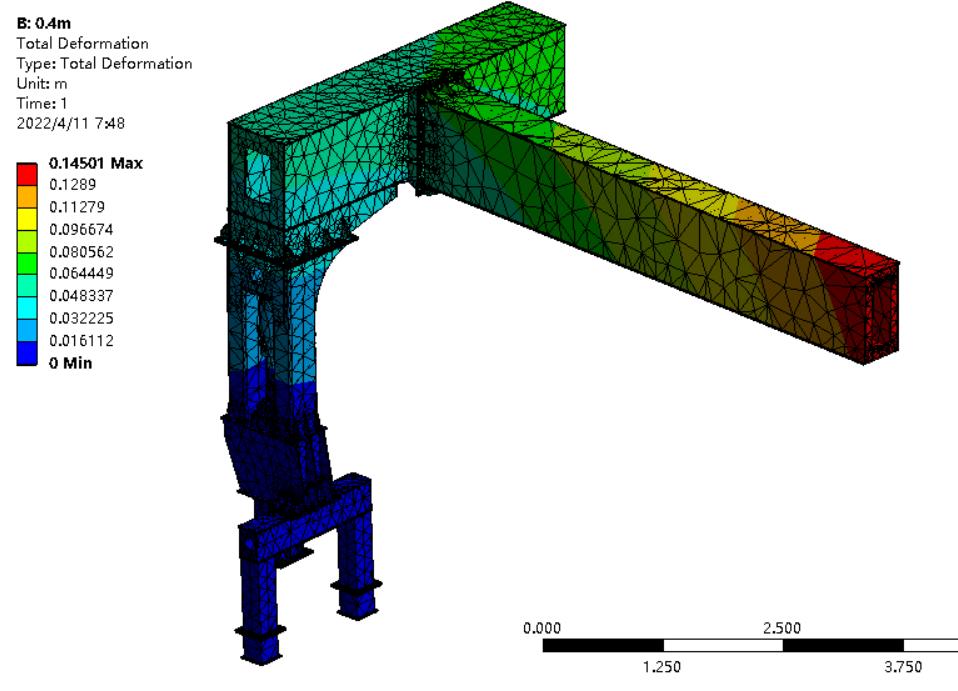 针对不同工况,将四分之一门架模型导入ANSYS Workbench进行有限元分析。