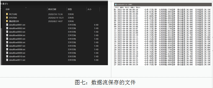 单片机端有多路传感器在不断地采集数据,在短时间内就可以采集到大量的数据流,,这些数据流在很多时候不能得到有效保存,只是作为过程量。为了能够保存这些数据流以供后续作为数据集研究,我做了一个可以保存大量数据流的系统,用户只需要简单的开启操作,其他的都由程序自己实现。实现该自动保存数据流的系统用到了FATFS文件管理系统,TF卡存储介质,EEPROM掉电存储,IIC协议,RTC及spi-flash等多种配置。按下保存按钮后,系统会进行数据流的保存,会将数据自动保存在.txt文本文件中,保存的数据写入,新建文件等一系列操作都是自动完成,如图七所示: