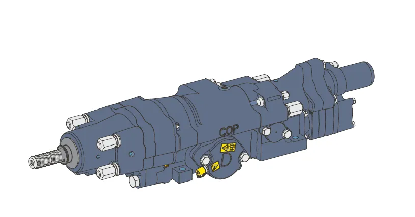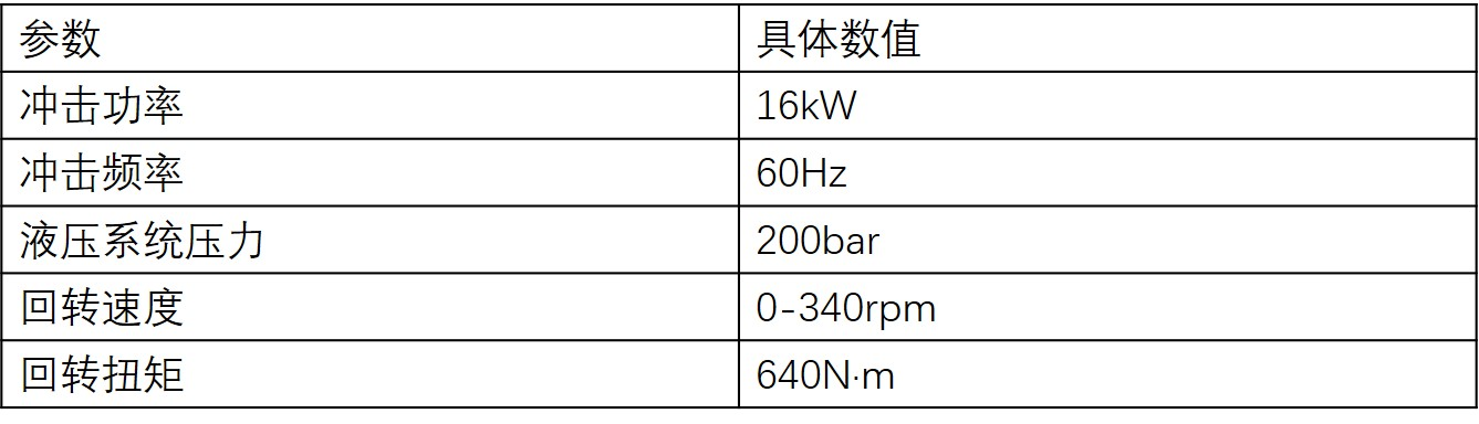 (4)确定了通过不同种类液压油缸,实现机械臂摆动,俯仰抬升功能的局部设计方案,选定了使用瑞典阿特拉斯公司的COP1638型凿岩机作为工作装置。