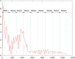 2.1分段频谱RMS值的提取。对样本时域信号作快速傅里叶(FFT)变换,原始信号采样频率为2560Hz,变换后将整个频带等分为8份,提取每个子带的幅值RMS值作为特征,得到一个包含8个数据的频率序列特征。这么做既可以大大减少训练冗余数据提高训练速度,还能保留信号的序列特征。