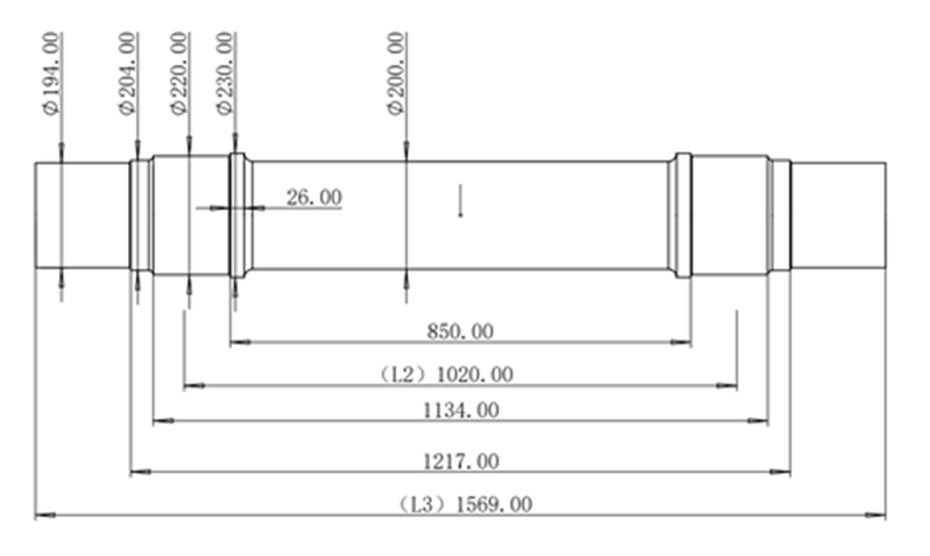 依照RD2车轴尺寸设计缩短后适用于轴箱内置的车轴: