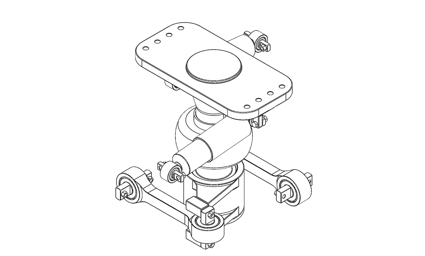 中央牵引连接装置采用Z字牵引拉杆与中心销相结合的方式,牵引拉杆采用十字布置,减小中心销垂向和横向位移的刚度,并设计了02型号柯尼油压减振器作为二系横向减振器: