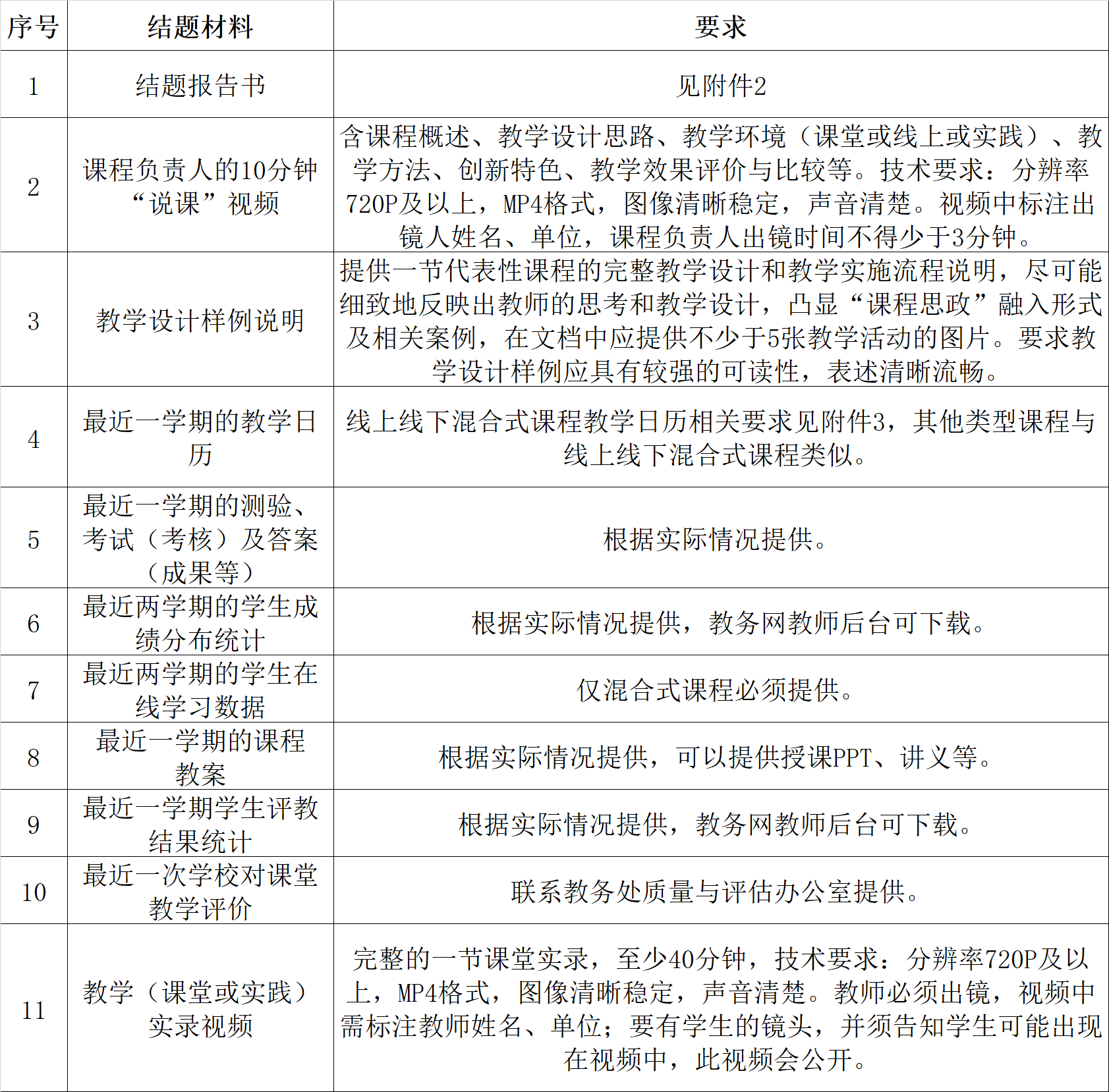 注:本次项目结题将采用“网评+会评”的形式,学校将邀请校内外知名课程建设专家对课程建设成果进行评价,对于建设成效达到预期标准的项目予以结题,遴选认定西南交通大学校级一流本科课程。