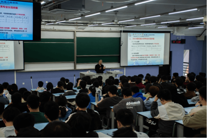 田怀文介绍了2023级机械大类各专业的规模、基本情况以及分流依据,加深了同学们对各大专业的认识,希望同学们对专业进行全面了解,不要盲目跟随,在理性思考后选择适合自身的专业方向。