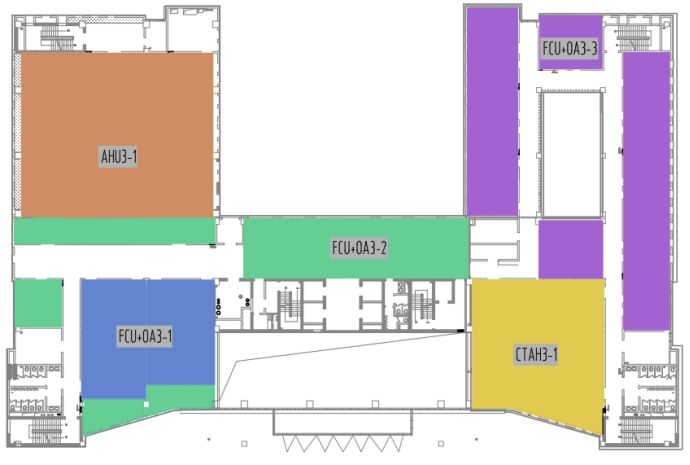 新风系统以三层办公区(FCU+OA3-3)为例,完成风口的布置和风管的绘制,运用天正暖通完成风管水力计算。